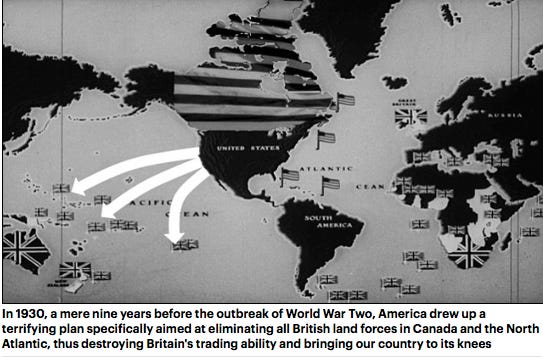 What has been omitted from our history books in schools, colleges and universities is that our American neighbour had envisaged to wage war on Canada. The U.S. War Department had drafted in the early 1920s a plan to Invade the Dominion of Canada (1921).