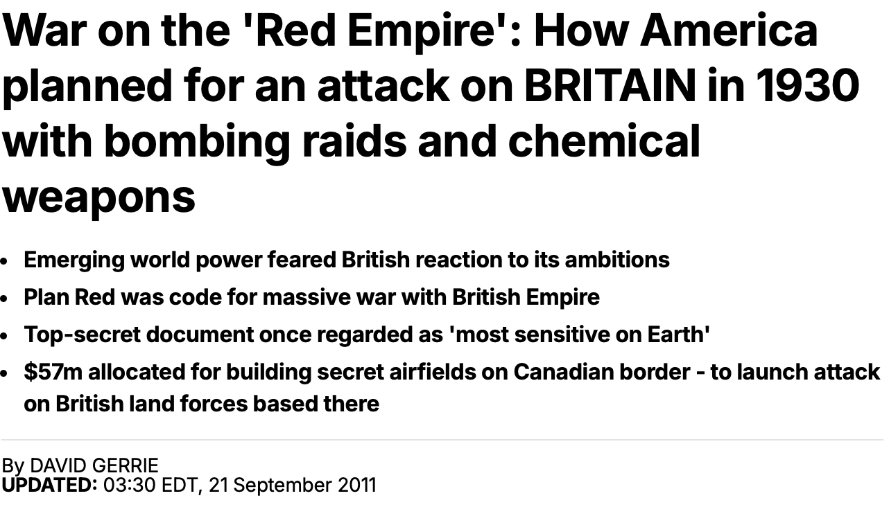 “If US war plans for the conquest of Canada provoke laughter, that is a comment on those who are laughing, not a comment on the war plans. In its day, War Plan RED was not meant to be funny.